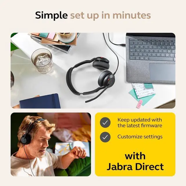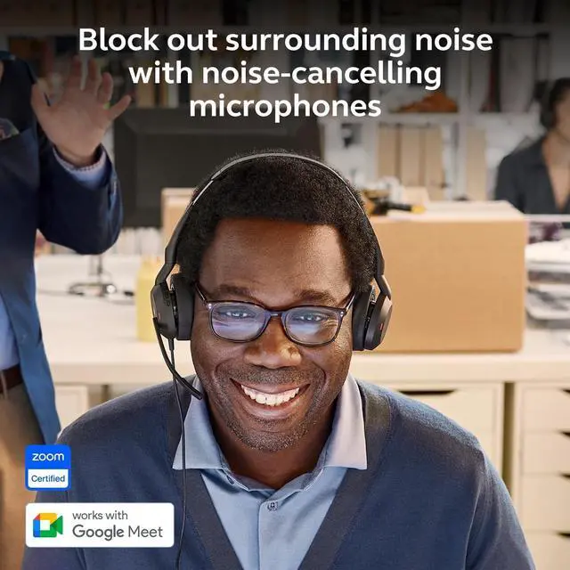 The integrated busylight feature lets colleagues know when you're not to be disturbed, making it an ideal office headset. From its easy setup and seamless connectivity to its superior sound quality, this is a great headset for noisy office environments. The Evolve2 50 isn't just a computer headset with microphone; it's a versatile work solution. Upgrade your work from home headset experience with the Jabra Evolve2 50, the choice for professionals seeking the best noise cancelling headphones for work. Give your team the tools they need to succeed with this premium office headset.