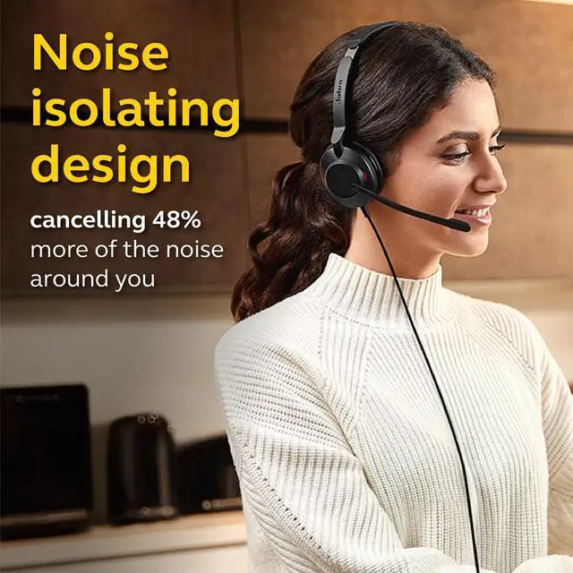 Jabra Evolve2 30 wired headset opens doors to enhanced comfort, seamless collaboration, and instant concentration anytime, anywhere. When time is of the essence, great quality audio is essential. This office headset features professional-grade 28mm speakers and an advanced digital chipset to deliver exceptional audio quality. Plus, with our advanced 2-microphone audio system, this telephone headset will capture your voice while simultaneously analyzing and reducing noise around you. Its a sophisticated microphone headset that will help you get your point across and ensure even the smallest nuance isnt lost in translation.