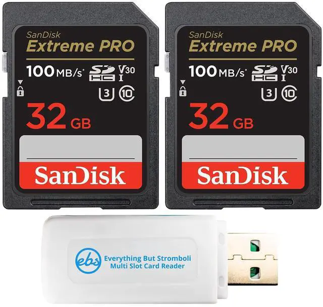Grab this two pack of our most powerful SD UHS-I memory card delivers maximum speed for performance, reliability, and uncompromising image and 4k UHD video quality from your DSLR, advanced digital or HD video camera transfer speeds up to 100 MB/s* move your data fast for efficient post-production workflow. Comes with an Everything But Stromboli Combo memory card reader