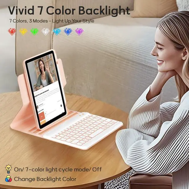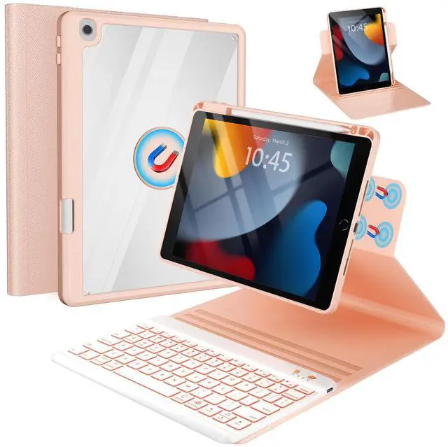 Keyboard Case for iPad 9th/8th/7th Generation-10.2 inch 2021/2020/2019, iPad Pro 10.5-inch, iPad Air 3 Gen Case with Backlit Keyboard, 360° Rotatable Detachable Folio with Pencil Holder (Pink)