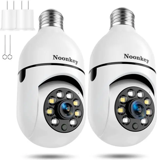 Noonkey 2K/3MP Light Bulb Security Camera 2 Pack Alexa Home 360° Wireless Security Camera Outdoor, Motion Tracking Detection Alarm, Color Night Vision