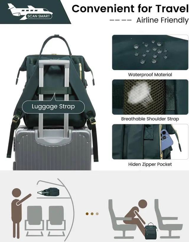 TRAVEL-FRIENDLY BACKPACKThis travel backpack for women includes a trolley strap for seamless attachment to rolling luggage, simplifying travel. It also boasts a secure anti-theft pocket, safeguarding your valuables from theft.