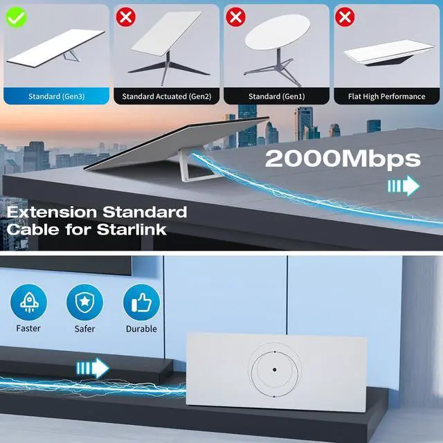 Starlink cable gen 3 is designed to replace the Standard cable. Plug it to your gen 3 Starlink standard dish and router, enjoy seamless internet access.