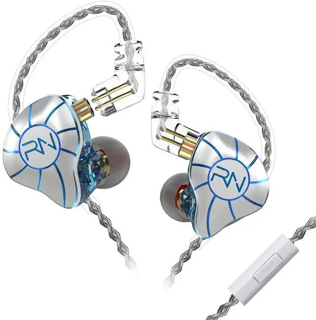 RevoNext in Ear Headphones 4BA+1DD 5 Drivers IEM Earphones HiFi Wired Earphones with Microphone 3.5 mm Audio Plug 2 Pin Detachable Cable Gaming Headphones, White