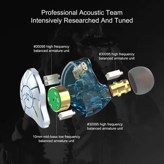 Restore Every Sound The in-ear monitor headphones use a single full-frequency dynamic driver, 4 balanced armatures combined with dual magnetic circuit design, the high and low frequency performance can be adjusted freely, and the sound can be Strong sense of substitution.