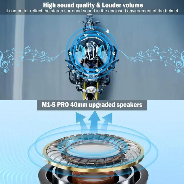 Crystal-Clear Sound Quality & HandsfreeThis helmet headset intercom uses high sound quality full-range membrane monomer. The M1-S Pro has high definition sound quality, especially for the bass has a high reproducibility. M1-S Pro has handsfree function,