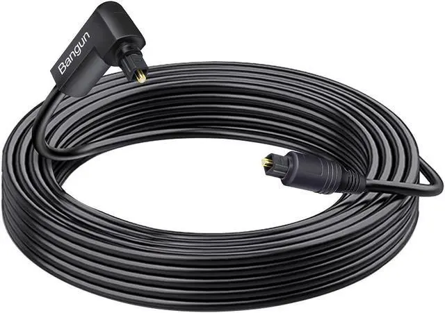 90 Degree Optical Audio Cable 60 feet, Slim Long Digital Audio Toslink Cable, 360 Degree Right Angle Fiber Optic Sound Cord for Sound Bar, TV, PS4, Xbox, Home Theater