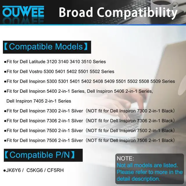 Fully compatible and high stabilityFit for Dell Latitude 3410 3510 Vostro 5300 5301 5401 5402 5501 5502 Inspiron 5300 5301 5401 5402 5408 5409 5501 5502 5508 5509 Inspiron 5400 5406 7405 Inspiron 7300 7306 7500 7506 2-in-1 Silver Series Notebook.