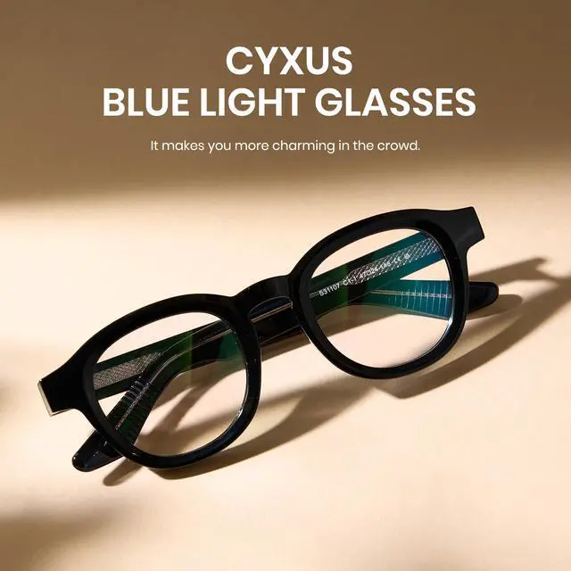 Cyxus Blue Light Glasses Fashion Round Computer Blue Ray Blocking Glasses Tr90 Frame Anti Glare Strain For Men Women 8553 Black