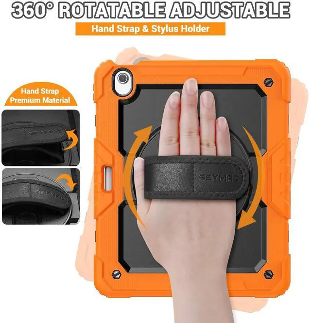 SEYMAC for iPad Air 13 Inch Case M3 2025/ M2 2024, Heavy Duty Shockproof Protective Case with Screen Protector, 360° Rotating Stand, Hand/Shoulder Strap and Pen Holder for iPad Air 13, Orange