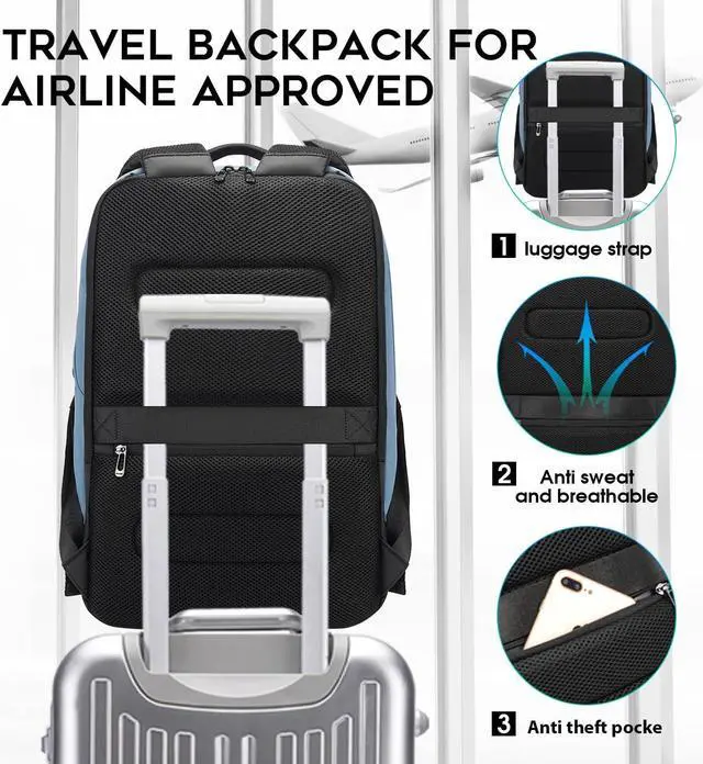 Durable designThe laptop backpack uses a more Durable Zipper, can more save your energy when you open and close, and hidden zipper pockets for additional anti theft protection on the back of the backpack,in side pocket,can hold umbrella,etc,Luggage strap design, luggage strap on the back to fix men work backpack on suitcase or luggagecan frees your hands,situatio