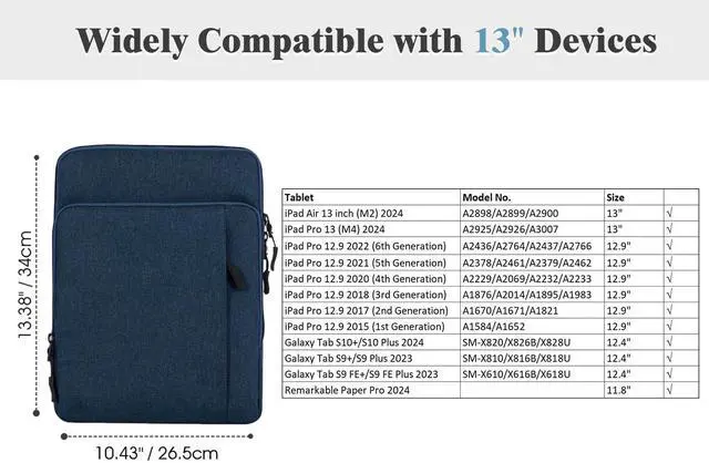 Fit for - Designed for 13 inch tablets and fits smart keyboard, compatible with iPad Air 13" (M3 2025/M2 2024), iPad Pro 13", iPad Pro 12.9", Galaxy Tab S9+/S9 Plus/S10+/S10 Plus/S9 FE+/S9 FE Plus 12.4", Remarkable Paper Pro 11.8"