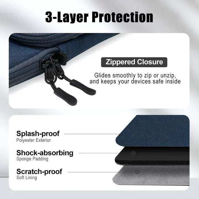 Waterproof & Durable Materials - This protective sleeve is made of premium materials with fine workmanship, the water-repellent exterior can protect against fluids and dust, and the padded foam interlayer and soft fleece interior lining are soft and safe for your device, keeping your device from being accidental bumps and scratched.