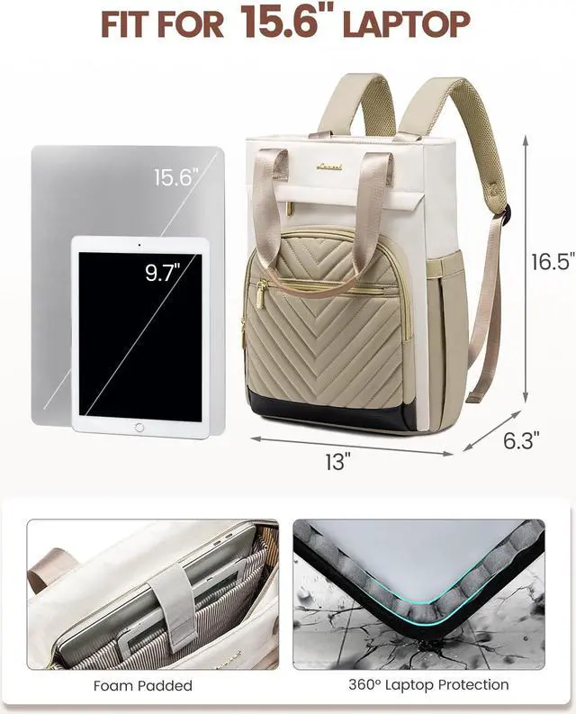 LAPTOP PROTECTION: This laptop bag for women has a built-in 15.6 inch laptop compartments and a 12.9-inch iPad slot. The pockets are sewn around with a cushioning material that maximizes physical protection for your laptop.