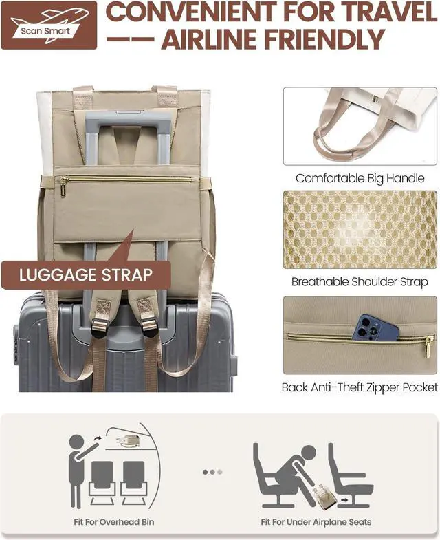 CONVENIENT TRAVEL BACKPACK: Trolley strap allows the women backpack to slide over rolling luggages to free