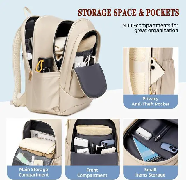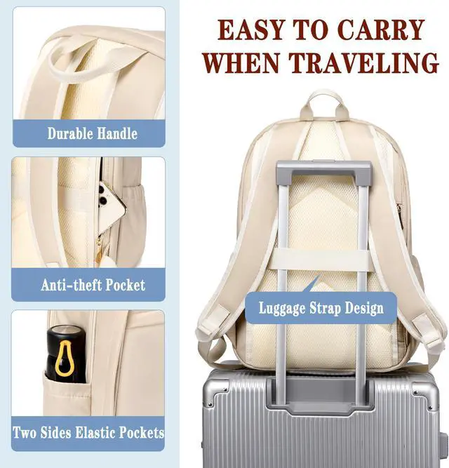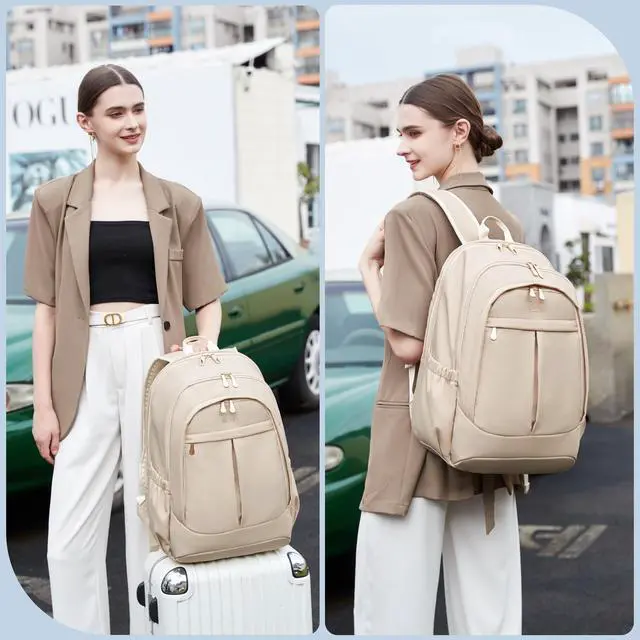 Hidds Travel Laptop Backpack for Women 15.6 Inch Computer Backpacks with USB Charging Hole Anti Theft Carry on Bag College Bookbag Large Back Pack for Work Business Travel Commuter Daypack-Champagne