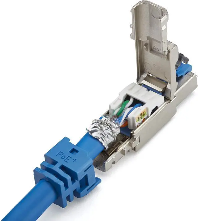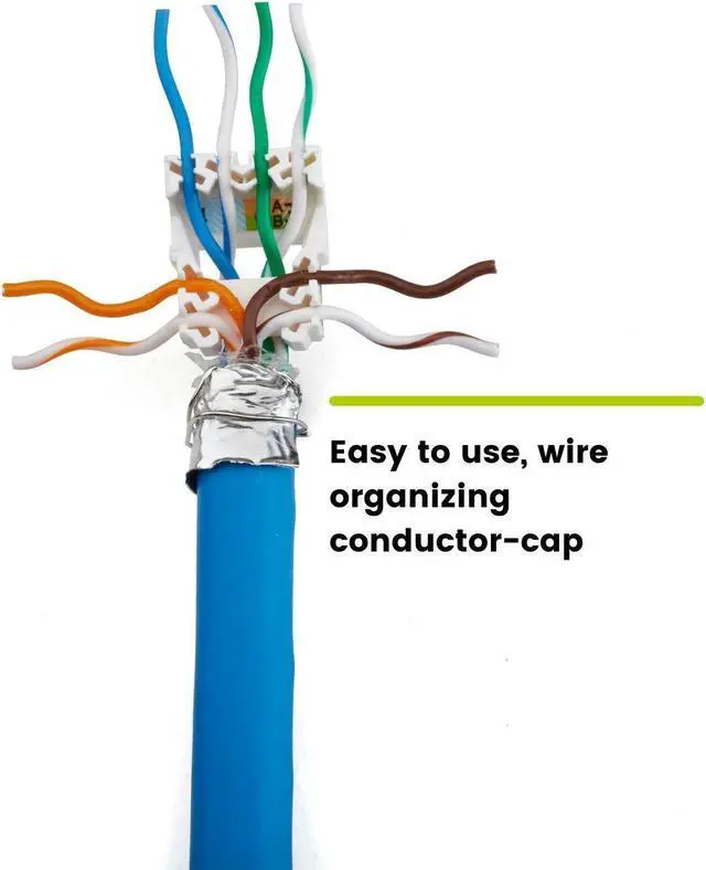 EASY TO USE. Self terminating means no more punch down tools required. Our 90 degree tool less design provides maximum snap-shut confidence. The dual level termination holder cap is marked with highly visible colors for easy T568A or T568B wiring and helps keep conductor pairs separate. Integrated anti-disconnect slide lock prevents accidental disconnections. The lock may also be removed to prevent tampering. Cut-to-fit strain relief boot supports 5.80 - 7.80mm cable jackets.