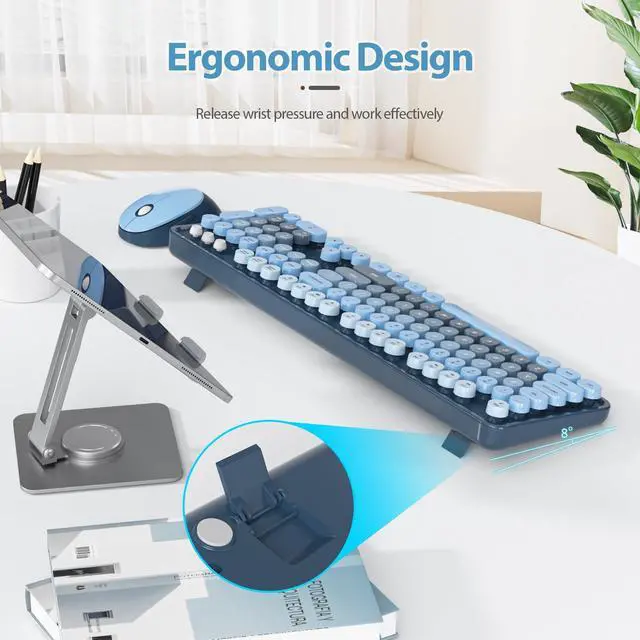Ergonomic Design & Removable Keycap: The colorful wireless keyboard and cute mouse combo is designed with folding feet and anti-slide pads for comfort. Removable keycaps make cleaning easy, ensuring your cute wireless keyboard stays in good condition