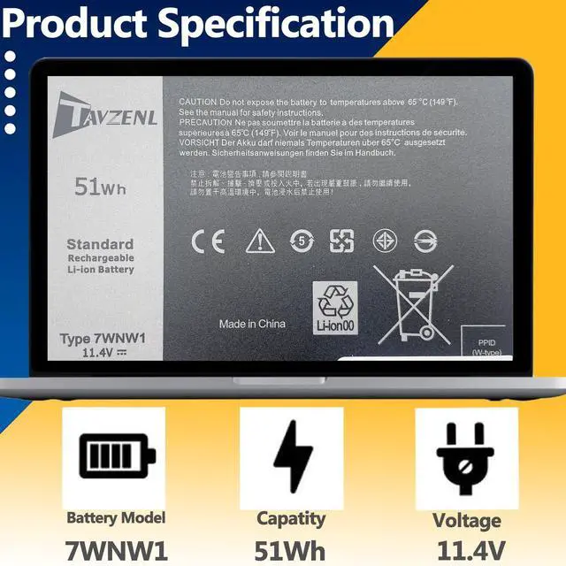 TAVZENL 7WNW1 51Wh Battery Replacement for Dell Latitude 5420 5424 7424 Rugged Extreme P86G001 P85G001 P137G002 P137G001 P86G P85G P137G Series DP3KF 451-BCHV GK3D3 6NNCF 0DMF8C 11.4V
