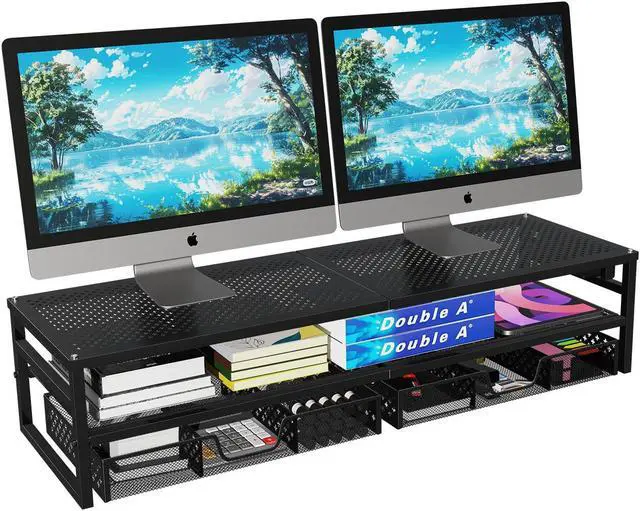 2 TIER MONITOR STAND: Makes it ideal for all computers, monitors and laptops,complimentary two drawers, great for use at home, the office or a home office