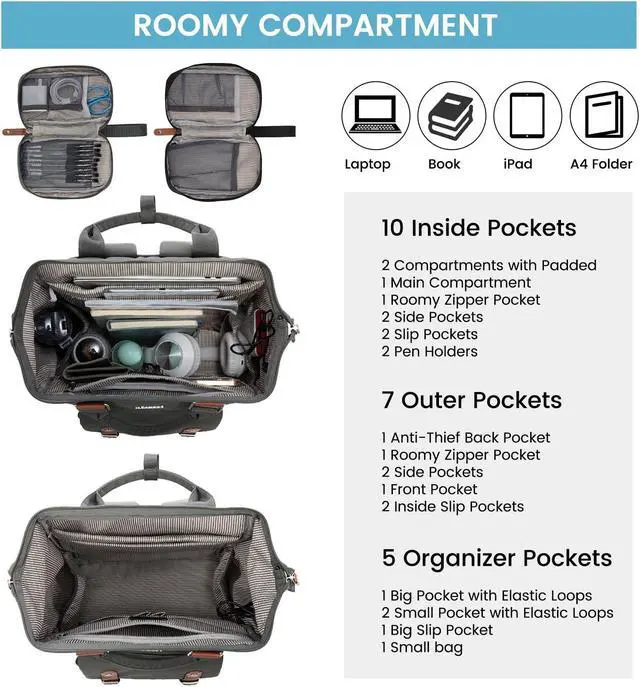 Wide Opening Design: Inspired by nurse bags, this women's laptop backpack features a wide opening that allows you to easily see all your items inside and quickly access what you need! Made with high-quality polyester, thick shoulder straps, elegant custom zippers, and reinforced stitching, this backpack ensures a perfect user experience