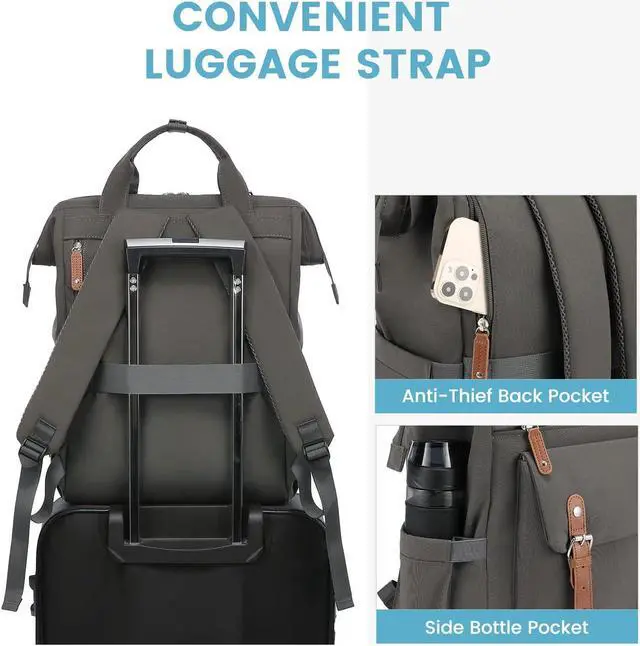 Women Travel Backpack: Traveling with this personal item travel bag is a breeze, thanks to the trolley strap that can attach to your luggage. The stretchy side pockets are perfect for holding water bottles, and with a hidden anti-theft pocket, you can travel with peace of mind