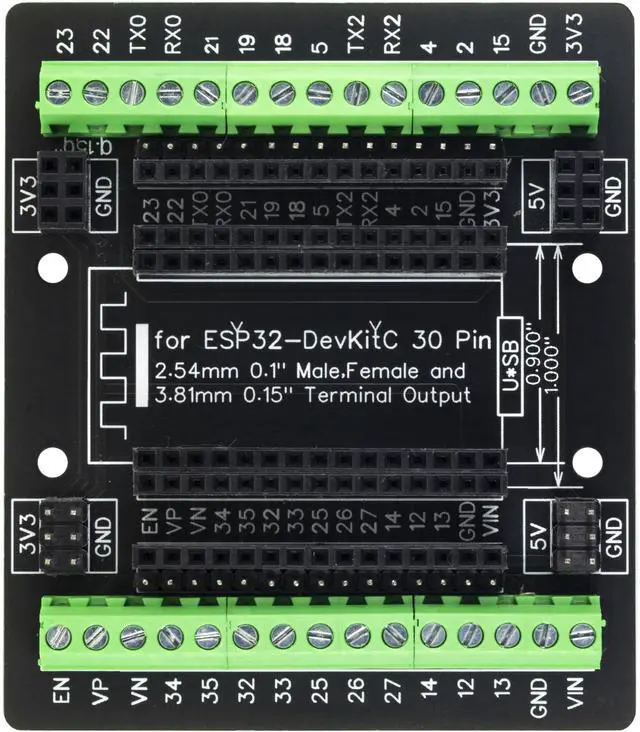 • 30Pins for ESP32 GPIO 1 into 3 Terminal Expansion Board