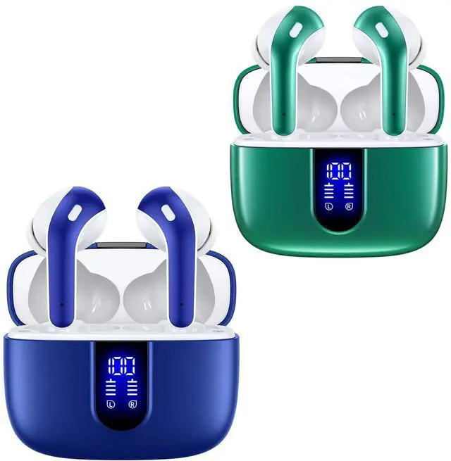 TAGRY 2 Sets X08 Ocean Blue and Forest Green Bluetooth Headphones True Wireless Earbuds 60H Playback Ear Buds with Wireless Charging Case in-Ear Earbuds with Mic