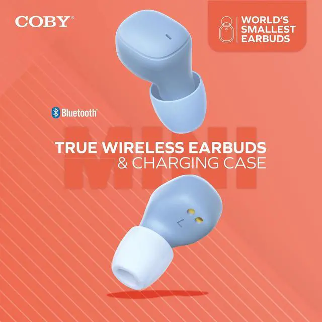 Coby Mini True Wireless Earbuds, Worlds Smallest Wireless Ear Buds, Lightweight in-Ear Headphones & Case, Built-in Mic | Bluetooth Headphones 12-HR Play (Blue)