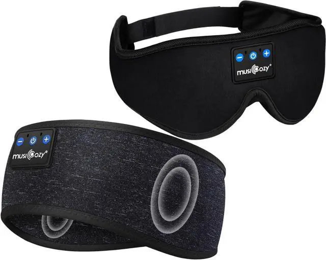 MUSICOZY Sleep Headphones Bluetooth Wireless Sports Headband, Sleeping Eye Mask Earbud for Side Sleepers Air Travel Meditation, Pack of 2