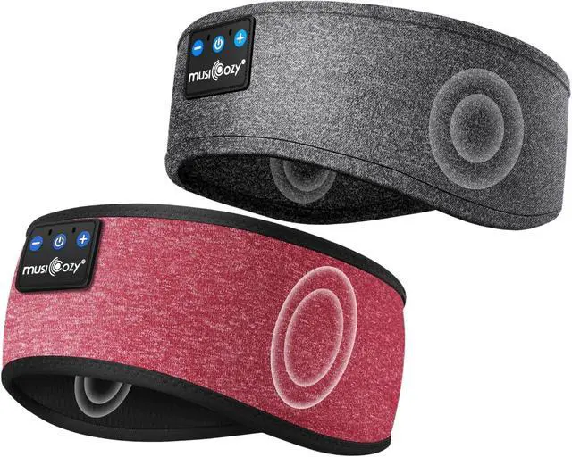 MUSICOZY Sleep Headphones Bluetooth Headband, Wireless Music Sleeping Headphones Sleep Mask Earbuds with Mic for Side Sleepers Workout Running Travel Yoga, Pack of 2