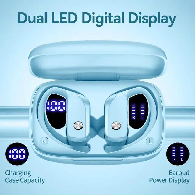 • Dual LED Displays Charging Case: Wireless earbuds with LED display make it obvious to show the battery power of the case and ear buds. The remaining power in percentage on the screen is shown to the left of the bluetooth headphones. The right side is assigning to a charging process of each bud, there are separated power consumption indicators by 4 grids in total, each grid represents 25% power of bud. During Charging, the LED indicator light will flash.