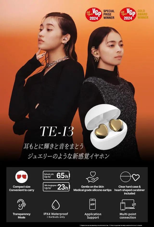 AVIOT TE-I3 Cute Heart-Shaped Wireless EarbudsTE-I3-RD with TE-I3-SL