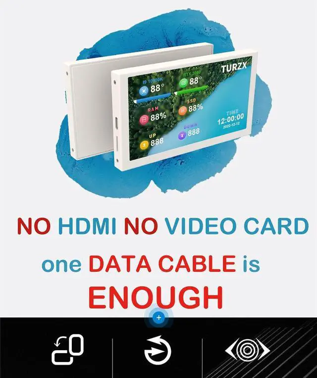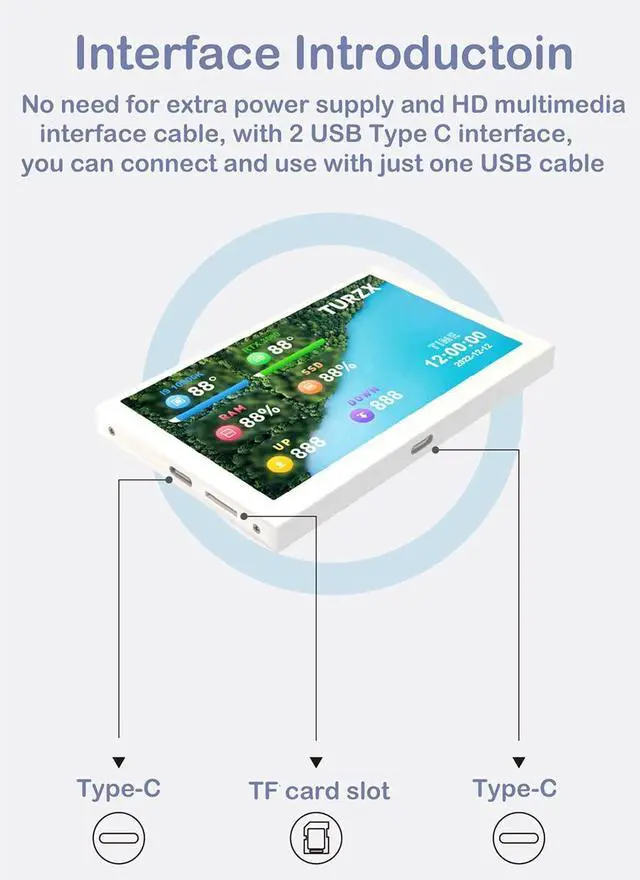 Features: - No additional power supply required and no HDMI required. Just a USB cable - 5-inch multi-theme display - Support horizontal and vertical screen switching, 360 degree rotation - Energy saving and environmental protection, automatic shutdown screen - Comfortable eye protection, stepless adjustment of screen brightness - One-click operation, change the background image, switch themes - Auto start at boot - Set weather forecast city - Compared with monitoring software such as AIDA64, it takes almost no resources when running - Visual theme editor, drag the mouse to realize your creativity parameter: -