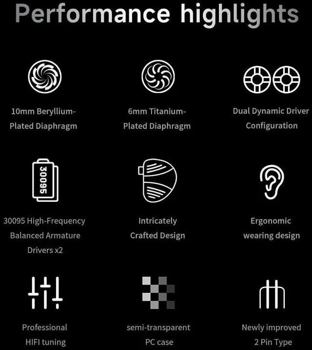 Interchangeable design:The Earphone allows for enhanced expandability and flexibility, enabling users to switch between different cable types to suit their specific needs and preferences, This versatile design caters to a wide range ofusage scenarios, providing a convenient and diverse listening experience.