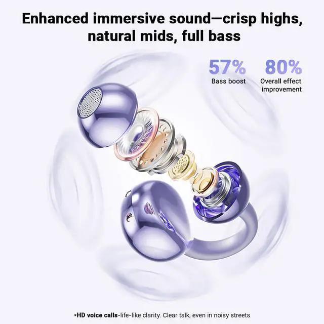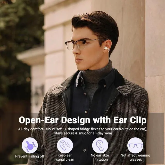 Unmatched Comfort & Secure Fit: Ditch ear pain with our upgraded C-Shaped Bridge! Jacuate clip-on earbuds are carefully engineered to fit all ear shapesthese ear clip earbuds lightweight at 3.5g for pain-free, all-day wear. Secure, comfortable, no slip