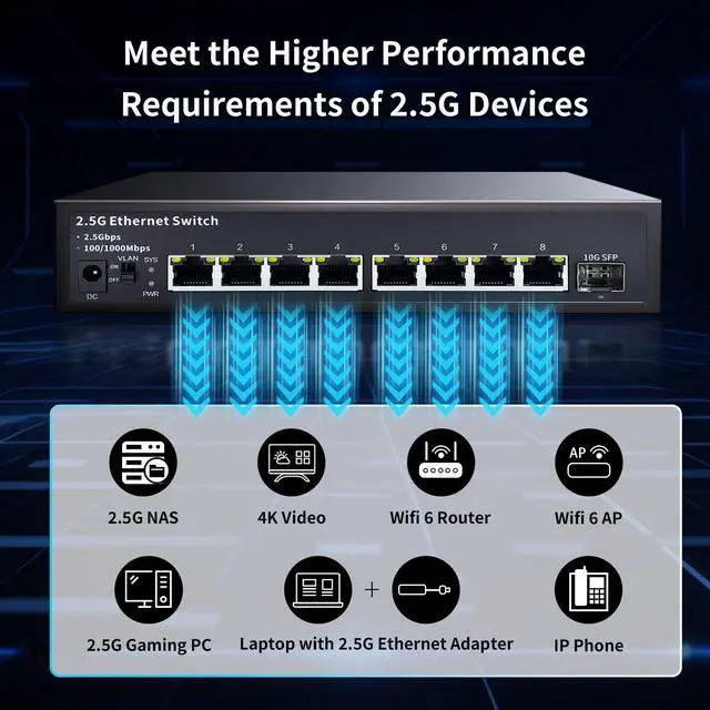 Plug and Play for Effortless Setup: Simply plug in the power cable and connect your Ethernet devicesno complex configuration required. This 2.5Gbps switch is designed for quick deployment, making it ideal for both home and office networks.