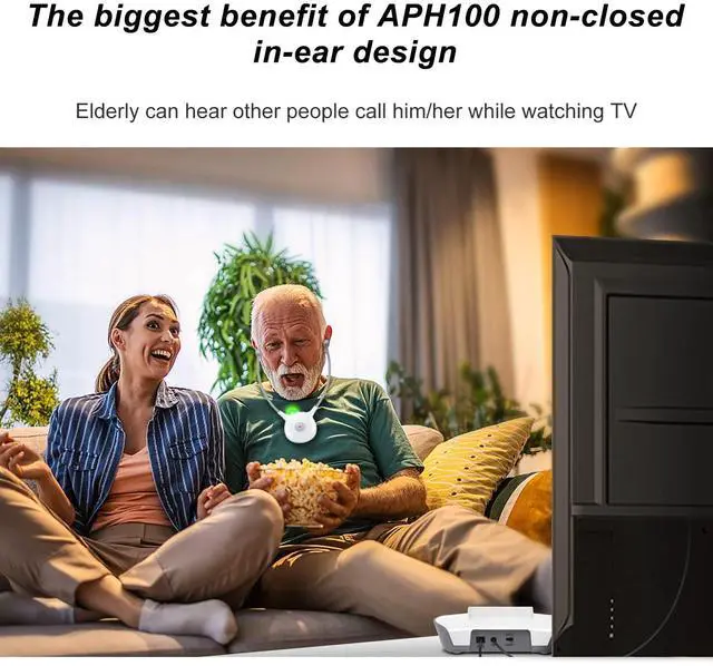 Stop Hearing loss in timeAPH100 is a non-closed in-ear TV headphone designed for the elderly with poor hearing ability. It differs from over-ear and full in-ear headphones (uncomfortable and causes hearing loss) in that it doesn't squeeze the ears or close the ear canal. The outgoing sound is far