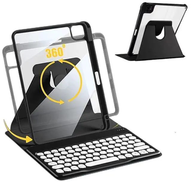Rotation Case with Keyboard for iPad Air 11 Inch 2025 (M3) /2024 (M2) /iPad Pro 11 4th Gen 2022, iPad Pro 3rd Gen 2021, iPad Pro 11 2nd Gen 2020, iPad Pro 11 1nd Gen 2018, iPad Air 5th Generation 2022 ( 10.9 Inch), iPad Air 4th Generation 2020, Round Keys Keyboard Case Tablet 360 Degree Smart Protective Stand Keyboard case With Pencil Holder