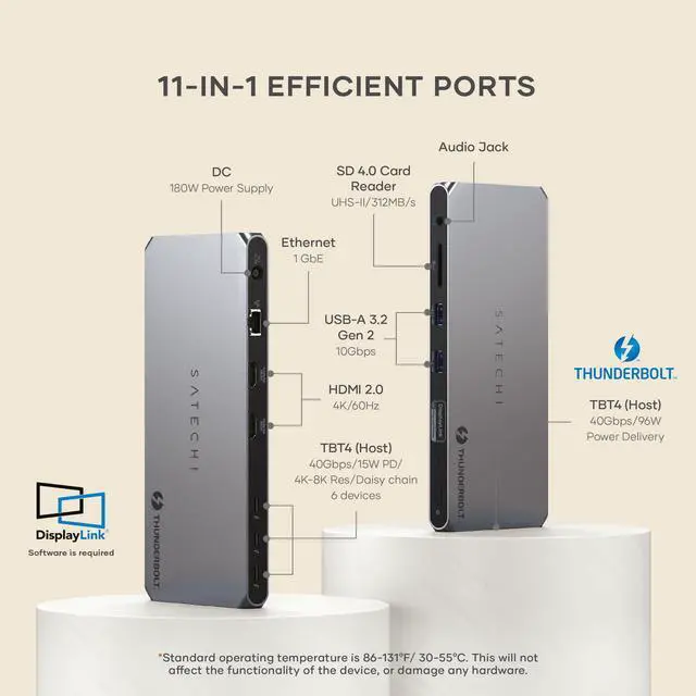Expand Your Peripherals our Thunderbolt 4 hub offers a USB-C 96W PD charging port to charge your device simultaneously, a UHS-II SD (4.0) card reader up to 312MB/s, and an ethernet port up to 1000Mbps for stable connection. Standard operating temperature is 86-131°F/ 30-55°C. This will not affect the functionality of t