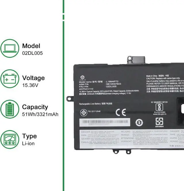• Replacement for Part Number: 02DL005 L18M4P72 SB10K97643 02DL006 L18C4P71 SB10K97644 02DL004 L18L4P71 SB10K97642 5B10W13930 5B10W13931 5B10W13932.