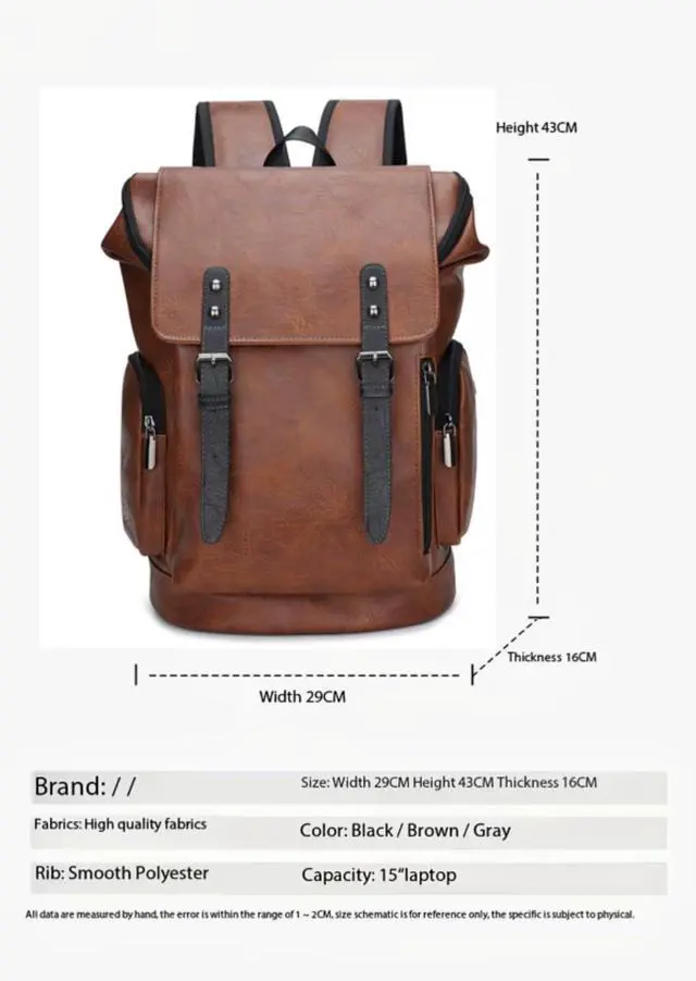 A 15.6 -inch backpack is a choice for school, work, travel, or daily use. This backpack is made of high-quality PU leather, exuding a delicate and casual charm that complements any outfit. This multifunctional backpack is a must-have for students, professionals, and travelers. With its spacious interior compartments, you can easily organize your belongings and stay safe on the go. The multi pocket design ensures that you can carry everything you need. Adjustable shoulder straps ensure a comfortable fit, while the top handle makes it easy to carry.
