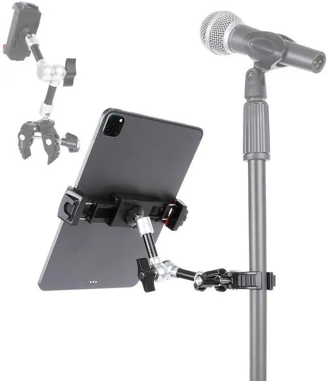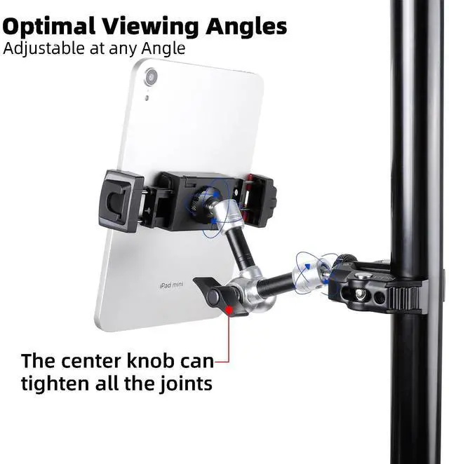 Innovative 7" Magic Arm with 360° Rotation: The 7-inch aluminum alloy magic arm features dual 360° rotating balls and precision CNC machining, allowing effortless adjustment for the perfect viewing angle. Position your tablet or phone in landscape mode for optimal visibility during performances or presentations.