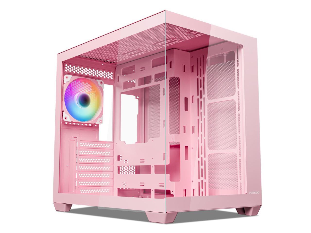 Vetroo AL900 ATX PC Case with 270° Full View Tempered Glass, Pre-Installed ARGB & PWM FDB Fan, Supports 360mm Radiator & 10 Fans, Type-C Ready, for 50 Series GPUs (Pink)