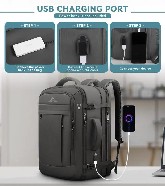 Expandable & Large CapacityThis large travel laptop backpack is designed to be expandable, backpack for travel giving you a large capacity pack up to 50L, unzipping to get larger storage space. The carry on backpack for men women fits overhead and under