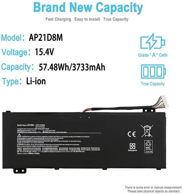 57.48W h AP21D8M Replacement Laptop Battery for Acer Nitro 5 AN515-46 AN515-47 AN515-58-56CL AN515-58-72QR Nitro V 15 ANV15-51 Nitro 16 AN16-51 AN16-51-56VT AN16-51-74BV AN16-51-76BS 3733mAh 15.4V