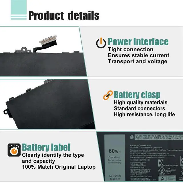 Quality AssuranceOur GT6TK laptop battery is highly compatible with the original GT6TK Battery for Latitude 9440 2-in-1 battery and meets CE/FCC/ROHS/UL certified standards. Strict guidelines for compatibility, Use of built-in circuit protection to ensure safety and stability. For assistance with the GT6TK battery, please visit our product detail page OR please contact us by email at any time, our professiona