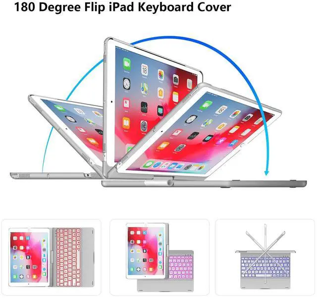 BABG Keyboard Case for iPad 6th/5th 9.7 inch, iPad Pro 9.7, iPad Air 2, iPad Air 1, 360°Swivel, 7 Use Modes, Backlight- Metallic Silver