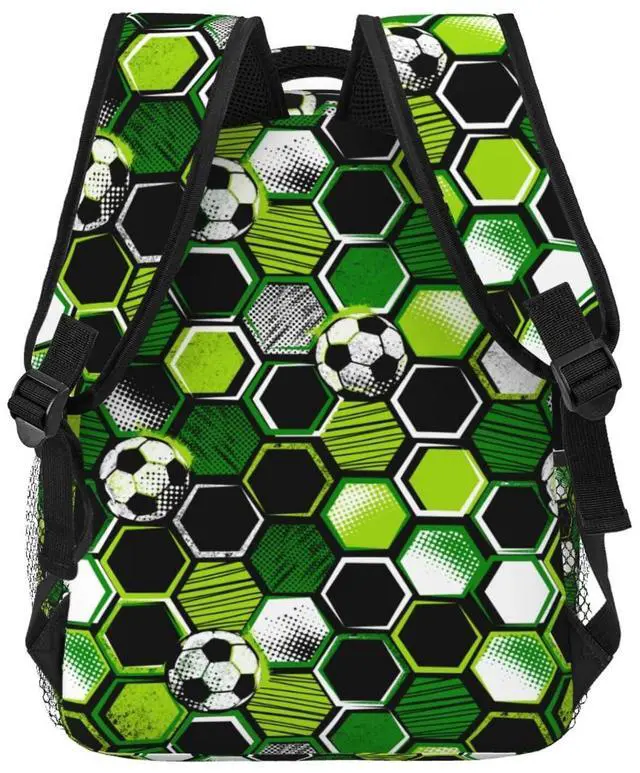 Fiokroo Soccer Ball Backpack School Bag For Students Teens Men Women Sport Geometric Texture Laptop Backpacks Travel Daypack Bag With Multiple Pockets