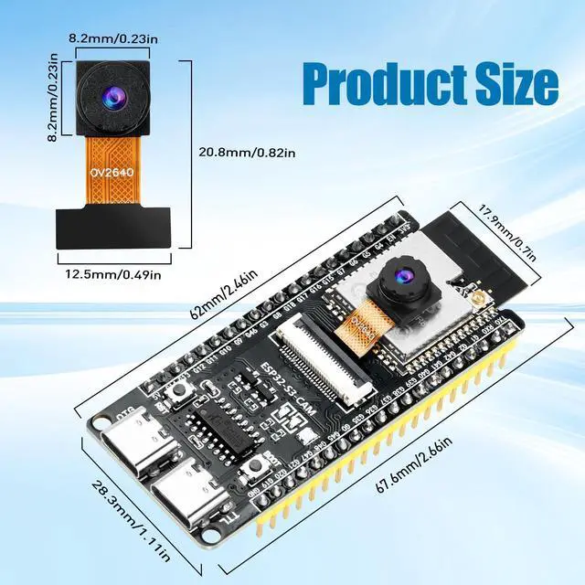 FORIOT 3Pcs ESP32-S3-CAM Development Board with OV2640 Camera, ESP32-S3-WROOM N16R8 Module with Dual Type-C Interface Support Wi-Fi and Bluetooth MCU Microcontroller for IoT, DIY and AI Project